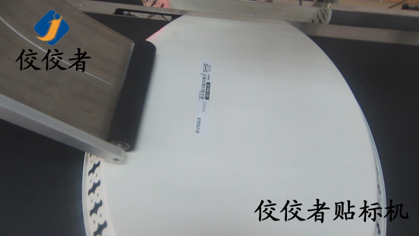 上圖傳感器檢測(cè)到產(chǎn)品經(jīng)過,傳回信號(hào)到貼標(biāo)控制系統(tǒng),信號(hào)經(jīng)過PLC處理后,在適當(dāng)時(shí)刻送出標(biāo)簽貼附在產(chǎn)品設(shè)定位置上,產(chǎn)品流經(jīng)覆標(biāo)裝置,標(biāo)簽被覆牢固,一張標(biāo)簽的貼附動(dòng)作完成。