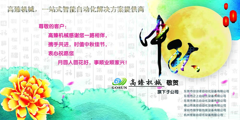 又一輪圓月,在中秋佳節到來之際,東莞市高臻智能自動化設備有限公司攜全體員工祝大家“做事兢兢業業,事業順順利利,好事層層疊疊,心情快快樂樂,身體健健康康,家庭和和美美;做成月餅送給您,中秋節快樂!”