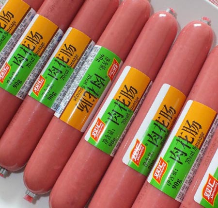 下圖是我公司的火腿腸貼標機給客戶試貼產品的樣品圖片。
