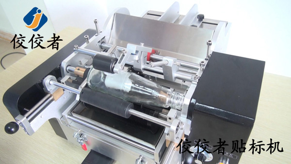 將玻璃瓶放到貼標機上,隨著瓶子的轉動便被貼上了標簽,如下圖: