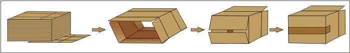 準備開箱—————————紙箱成型—————————紙箱折底—————紙箱封底(開箱完成)